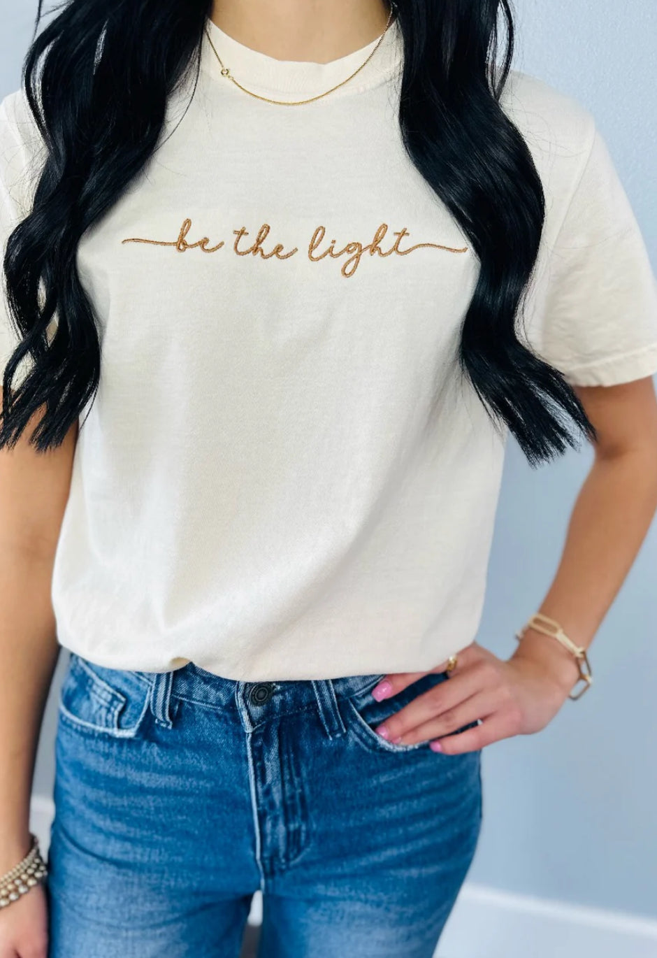 Embroidered Be the Light Tee